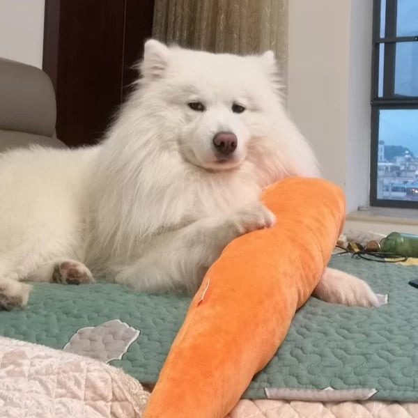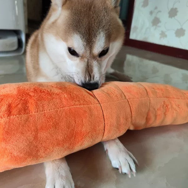 Our Carrot Squeaky Toy is the perfect companion to your dog's naptime or playtime with its three built-in squeaker boxes, soft and fluffy exterior, and large size! This squeaky toy is sure to give your dog a ton of comfiness and enjoyment!