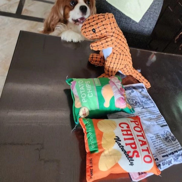 It's not often that you can say that your dog is playing with a bag of chips! This toy has a cute and clever design, but also provides some well-needed functionality that makes it totally worth it!