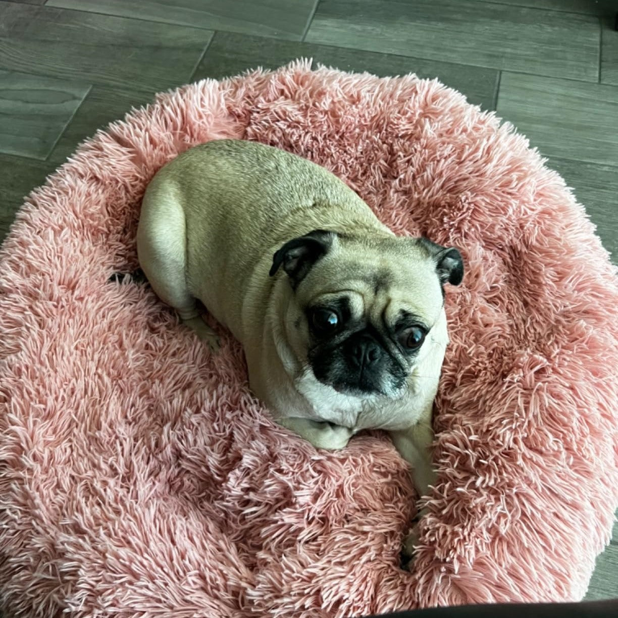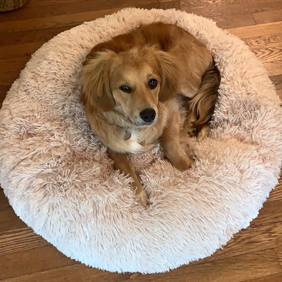 The bed comes in two sizes, perfect for smaller dogs, and even big ones to keep them snug when they lay on it!