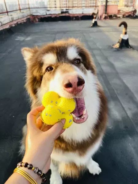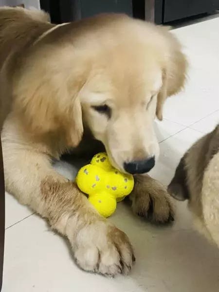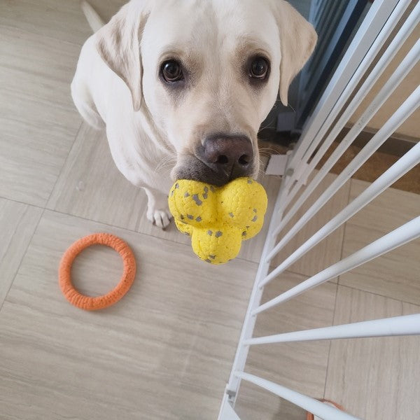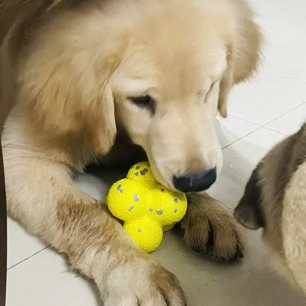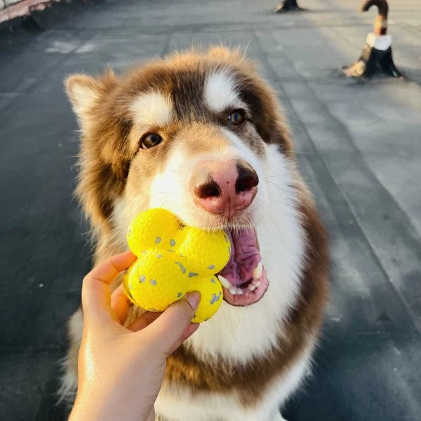 The ball has a design reminiscent of molecules, with a bumpy texture that makes it bounce unpredictably whenever it's thrown, making each chase fresh and feeling exciting every time! A simply great companion to keep your dog physically active!
