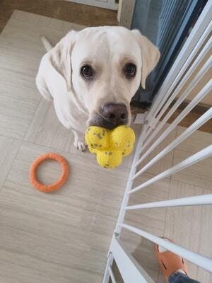 Made of highly resistant rubber, the ball is pierce-proof and cut-proof, meaning that your dog won't damage it by chewing or biting!