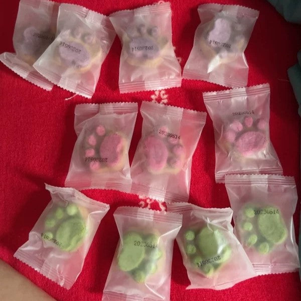 The treats are shaped like paws and coming in different color variants, to make sure that they're looking extra cute and enticing!